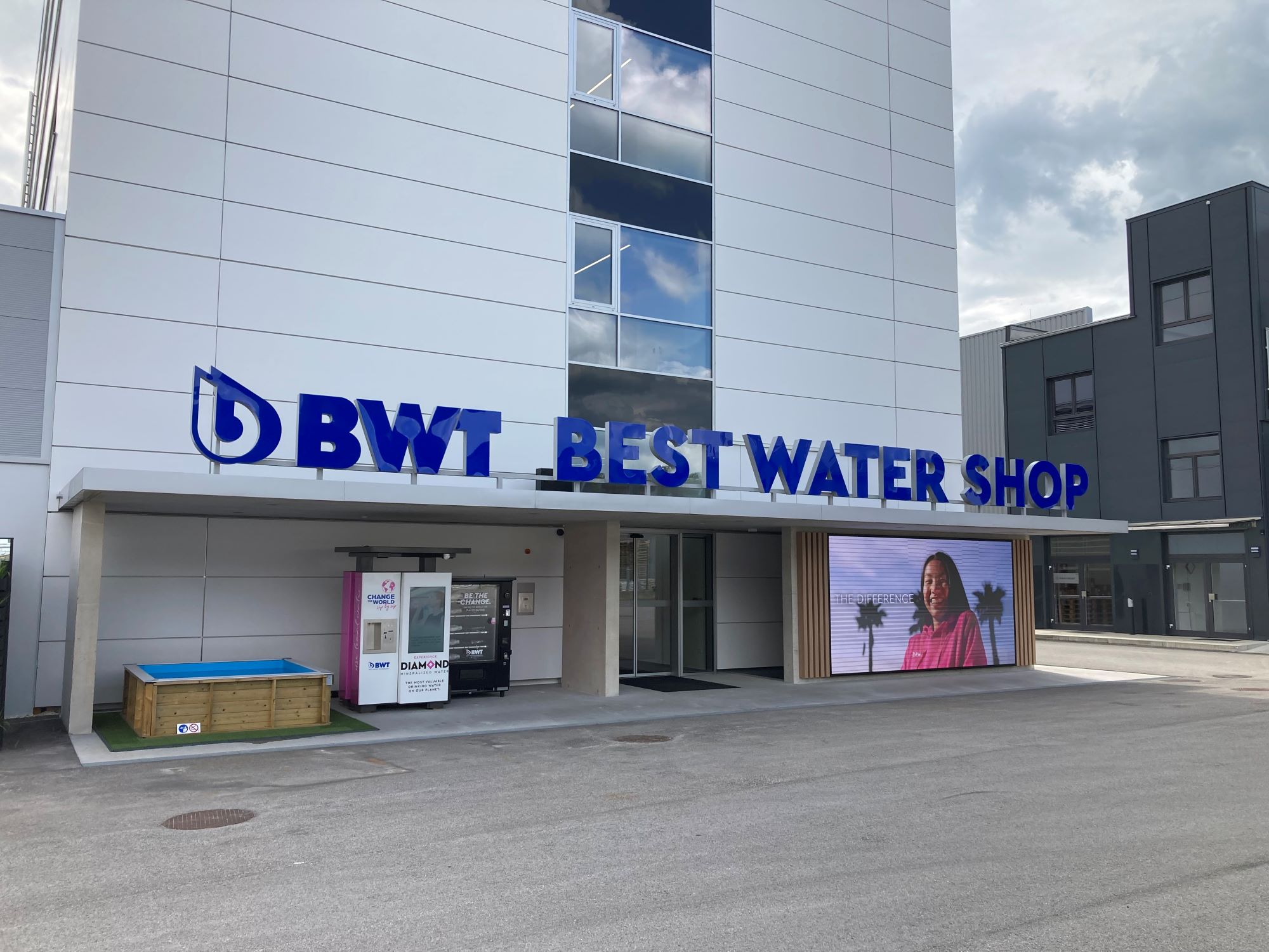 2023. In Mondsee errichtete die Firma BWT ihr ,,House of Future“. Auf ca. 5.300 m² wurden hoch moderne Shopflächen, Messeflächen, Schulung- und Mettingräume geschaffen. Vor allem durch die digitalen Ausstattungelemente wird der Besuch zu einem Erlebnis.