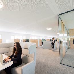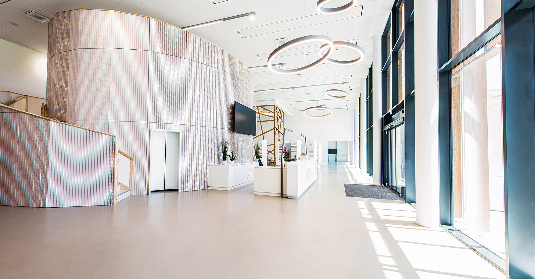 2022. Als Hersteller von Zubehör für Boden, Wand und Decke zählt das Familienunternehmen Neuhofer Holz GmbH zur internationalen Branchenspitze und exportiert seine Produkte in mehr als 70 Länder der Welt. Am Firmenstandort in Zell am Moos entstanden neue Lager- und Produktionshallen, ein dreistöckiges Bürogebäude mit einladender Kantine sowie ein repräsentativer Schauraum. Die Gesamtfläche des Bauvorhabens betrug insgesamt 14.550 Quadratmeter. Fertiggestellt wurden die Gebäude nach nur etwas mehr als einem Jahr Bauzeit.