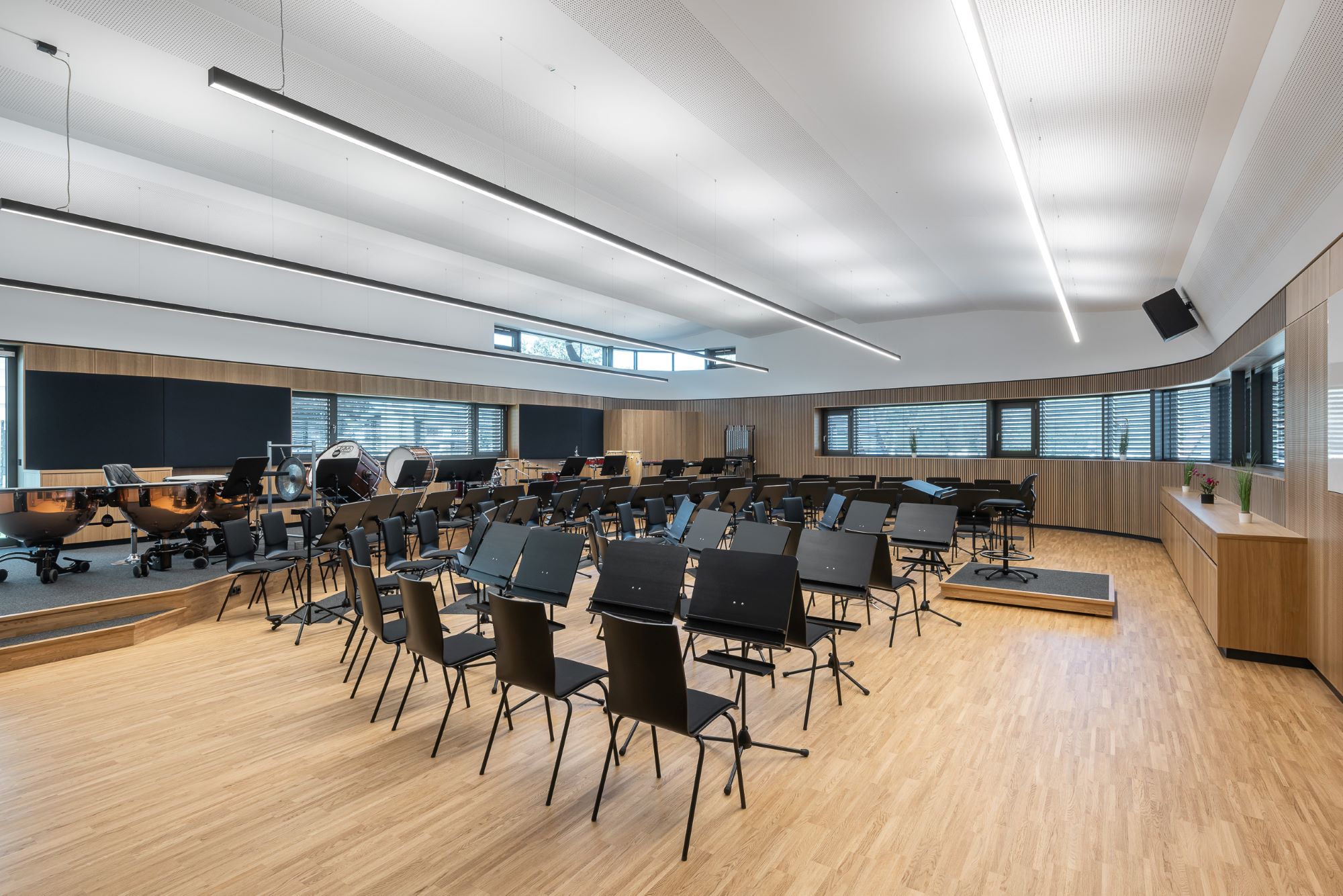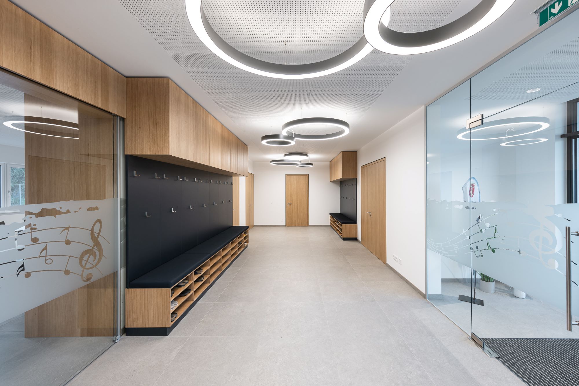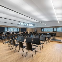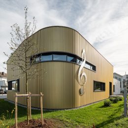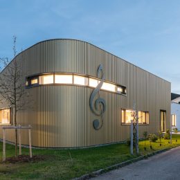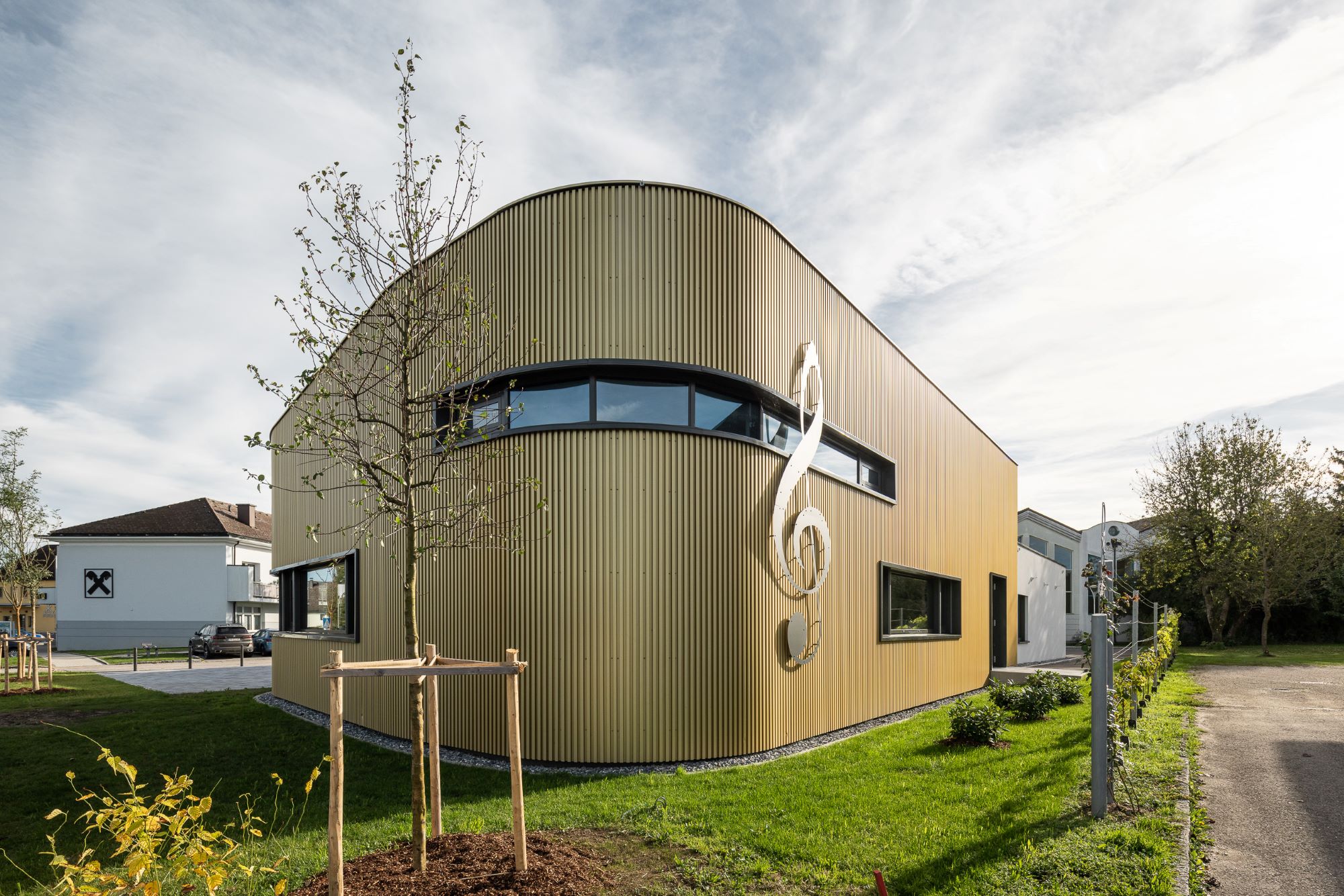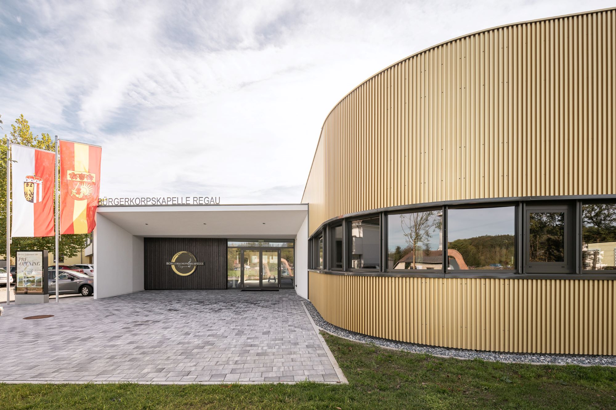 2024. Gemeinsam mit den F2 Architekten durften wir die Bürgerkorpskapelle Regau beim Neubau ihrers Musikheims begleiten. Der Baustart erfolgte im September 2023 und nach einem Jahr Bauzeit konnte die Musikkaplle im Oktober 2024 in ihr neues Heim einziehen. Im neuen Probenraum wurden durch akustische Maßnahmen die Anforderungen der Musikkapelle erfühlt. Außen besticht das Musikheim durch die moderne Metallfassade und das großzügige Eingangsvordach.
