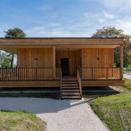 2021. Im Zuge der Erweiterung der Liegefläche und der Revitalisierung des öffentlichen Badeplatzes in Weyregg am Attersee wurde der Neubau des Buffetgebäudes mit modernen Sanitäranlagen umgesetzt. In enger Abstimmung mit dem Naturschutz und der Lawinen- und Wildbachverbauung wurde eine aufgeständerte Entwurfsidee entwickelt und umgesetzt werden.