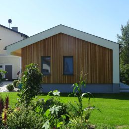 2016. Hier wurde durch die Gebetsberger ZT GmbH der Trend des Minihauses „Tinyhouse“ auf einer Fläche von nur 55 m2 nach den höchsten Ansprüchen der Bauherrin umgesetzt. Der Holzmassivbau bietet mit drei Räumen mit vielen Holzsichtflächen eine gemütliche und großzügige Wohnatmosphäre.