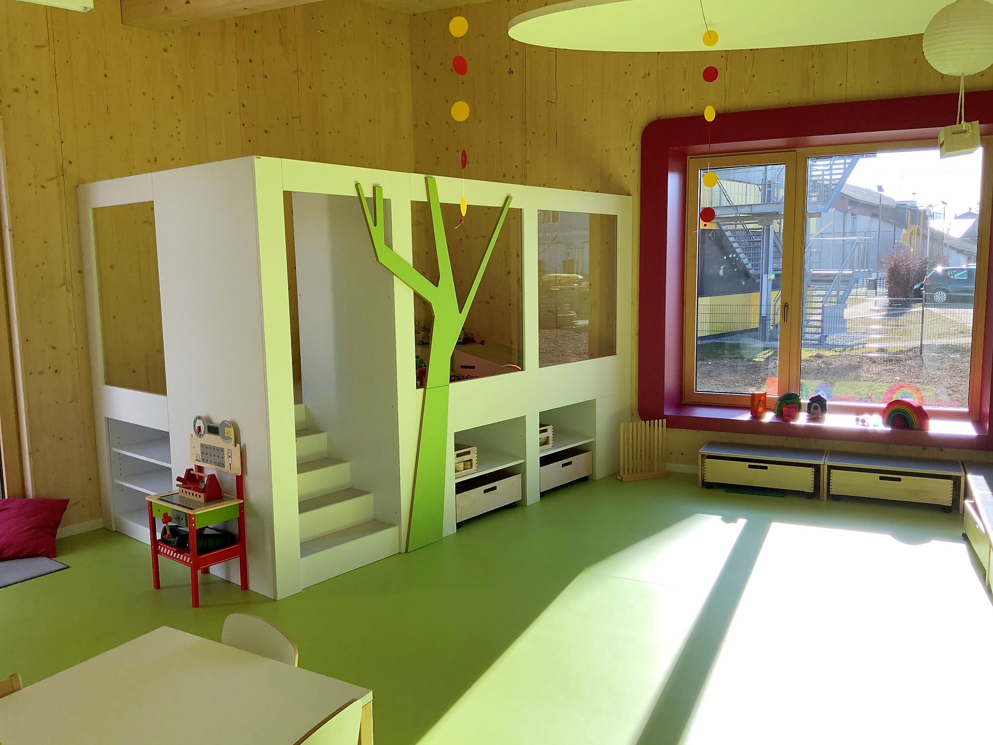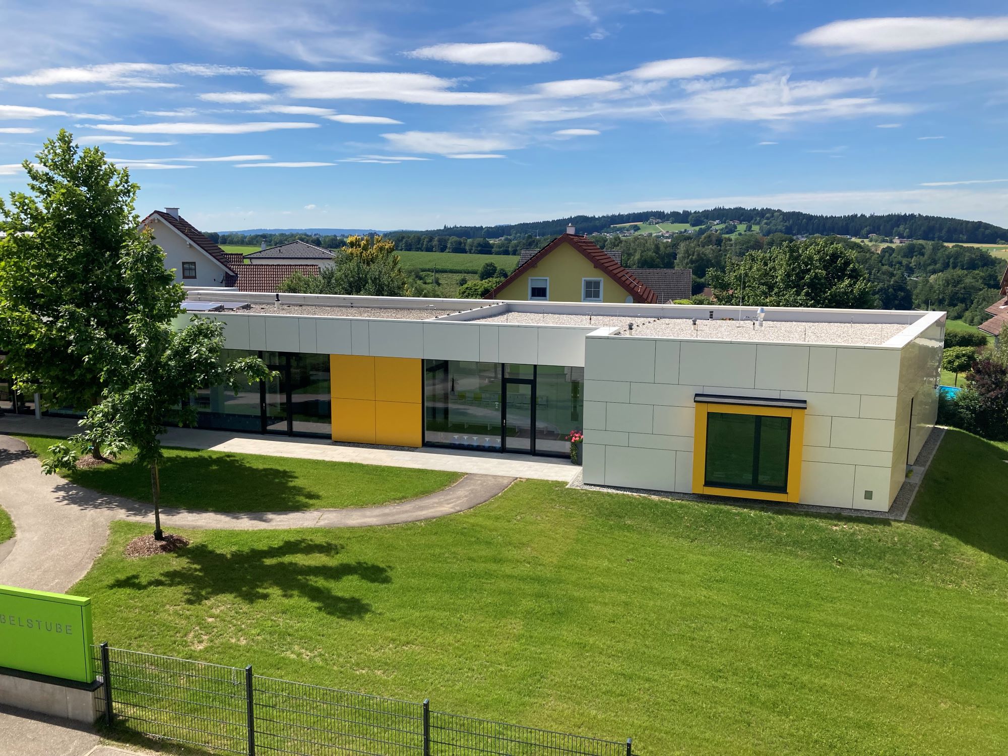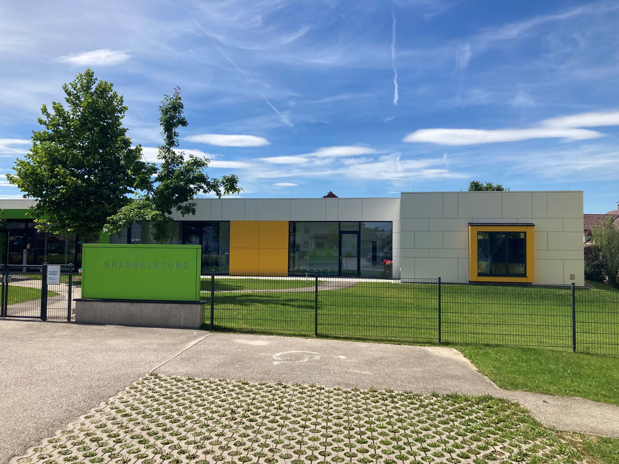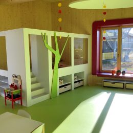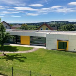 2022. Nach dem Entwurf der F2 Architekten ZT GmbH wurde die Krabbelstube in Gampern erweitert. Durch den Zubau bietet die Krabbelstube nun Platz für zwei zusätzliche Gruppen. Drüber hinaus wurde der Spielplatz vergrößert und mit neuen Spielgeräten ausgestattet.